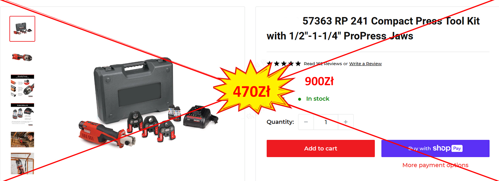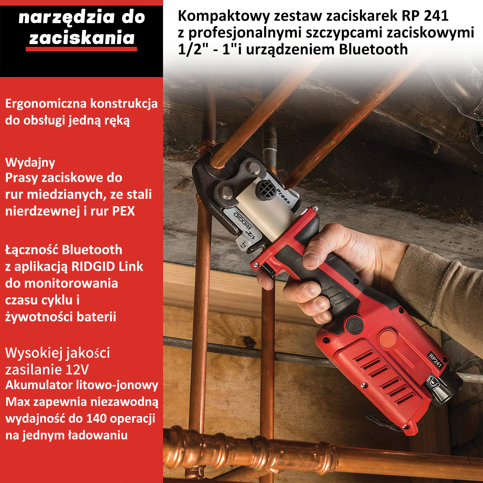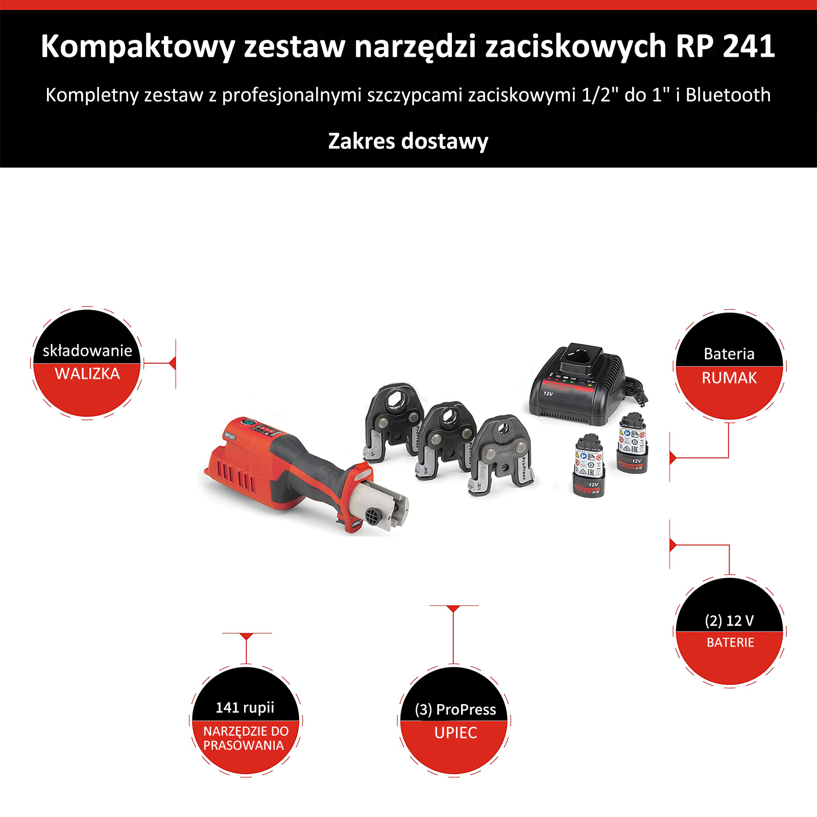 Zestaw kompaktowych narzędzi zaciskowych RIDGID, model 57373 RP 241, z zaciskiem ProPress 1/2