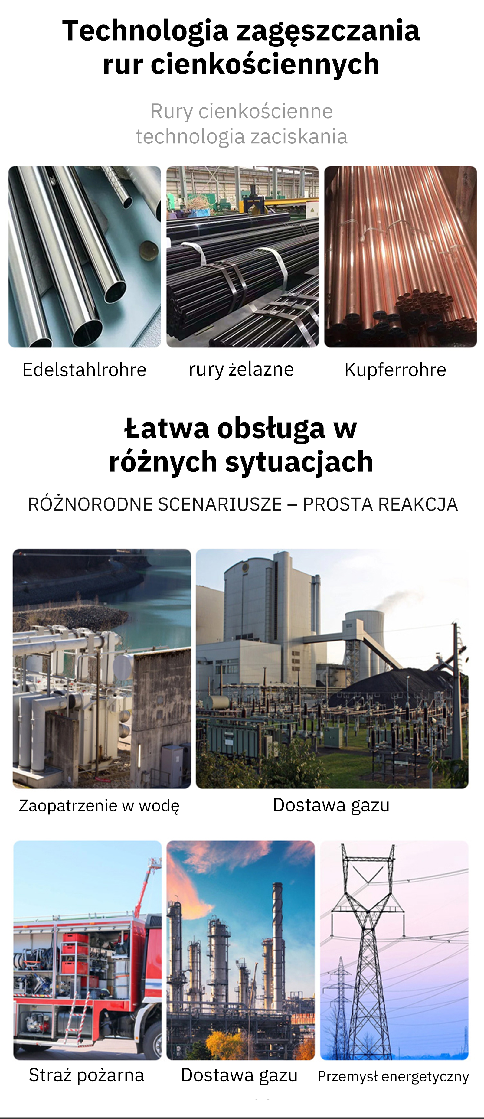 Przebija rury miedziane, ze stali nierdzewnej, żelazne i PEX.