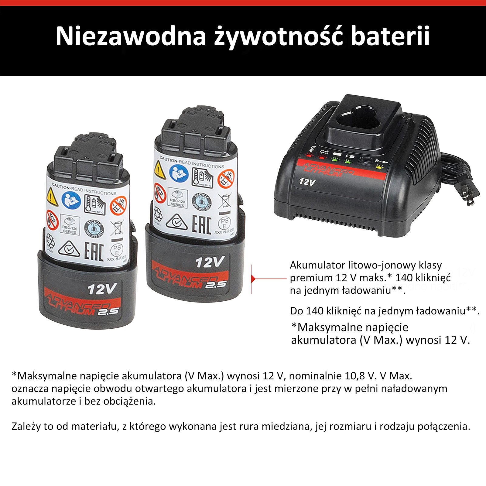 Dzięki baterii wystarczającej na 3 godziny pracy możesz wygodnie sprawdzić liczbę cykli ładowania i stan naładowania baterii za pomocą telefonu komórkowego i łatwego w obsłudze wskaźnika kolorowego. Dzięki 140 kliknięciom na jednym ładowaniu, to wytrzymałe i wydajne narzędzie zapewnia długi czas pracy na baterii, nawet podczas najdłuższych dni roboczych.
