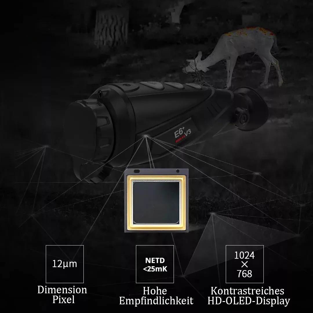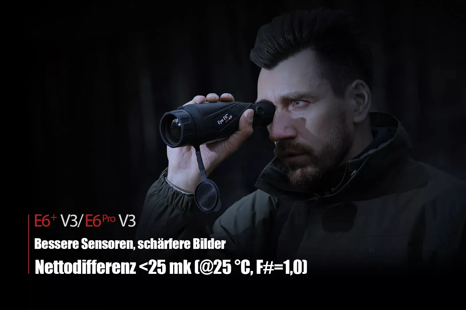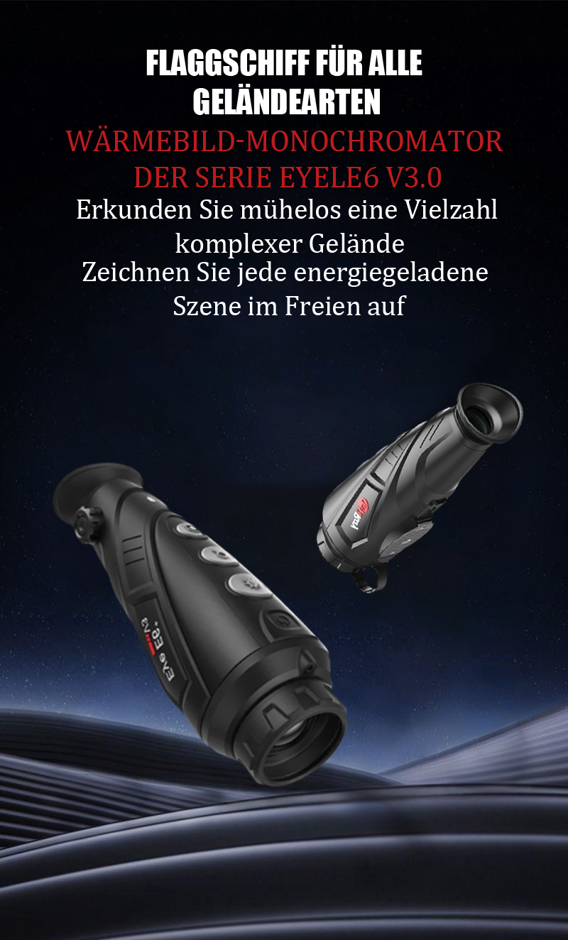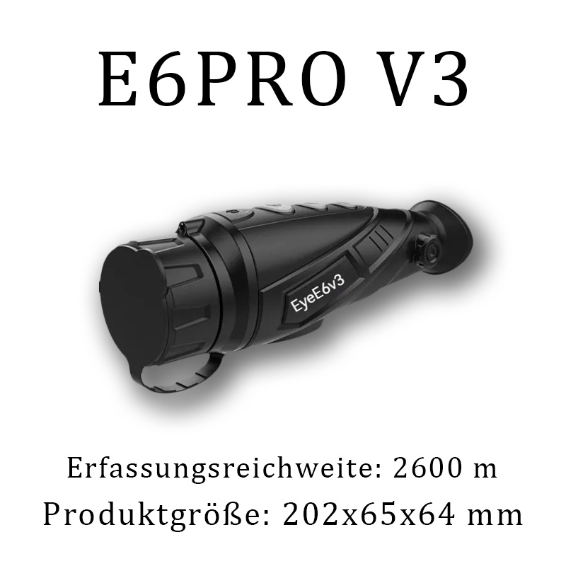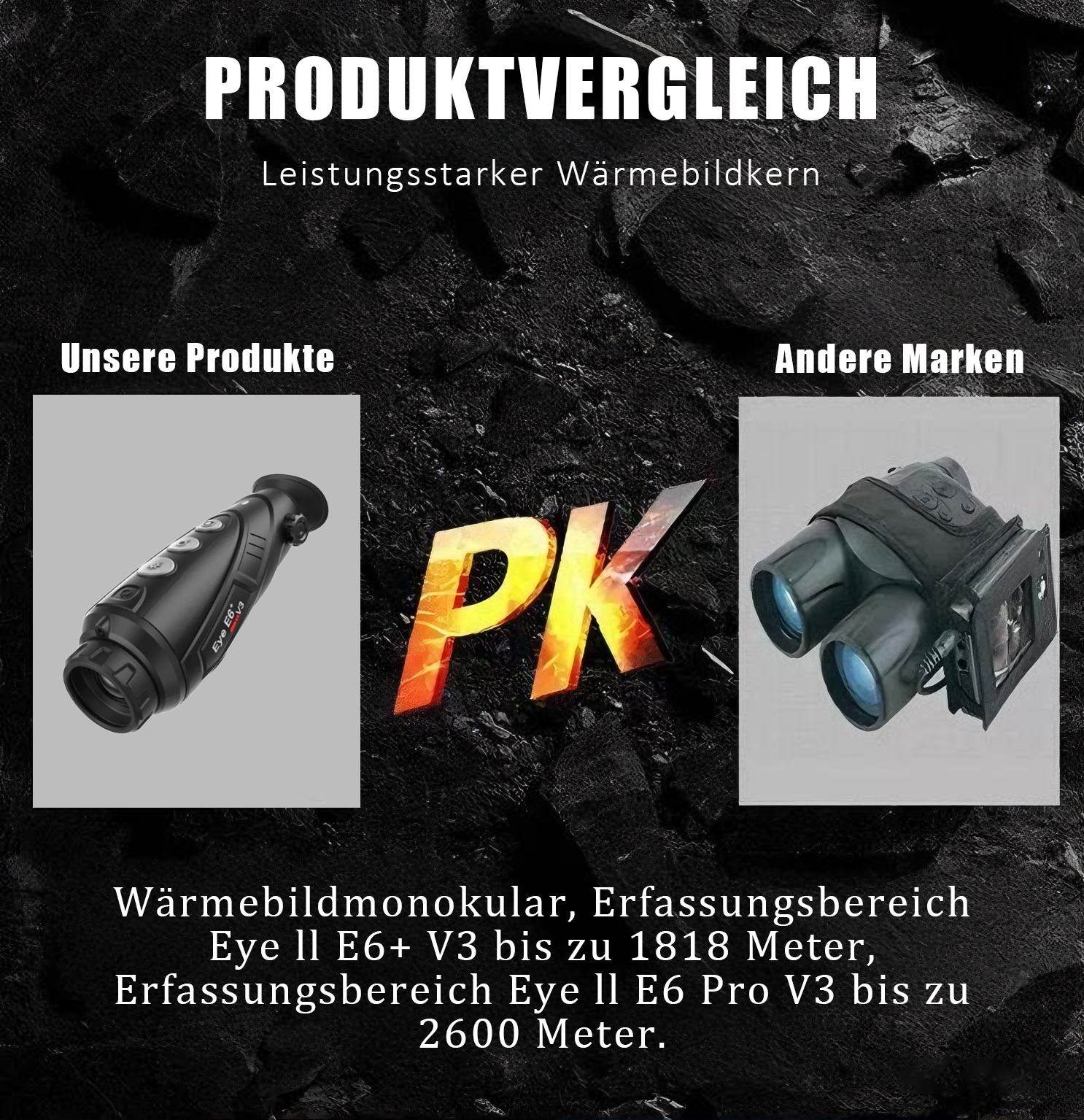 Wärmebildmonokular Eye ll E6+ V3 mit einer Erfassungsreichweite von bis zu 1818 Metern, Eye ll E6 Pro V3 mit einer Erfassungsreichweite von bis zu 2597 Metern.