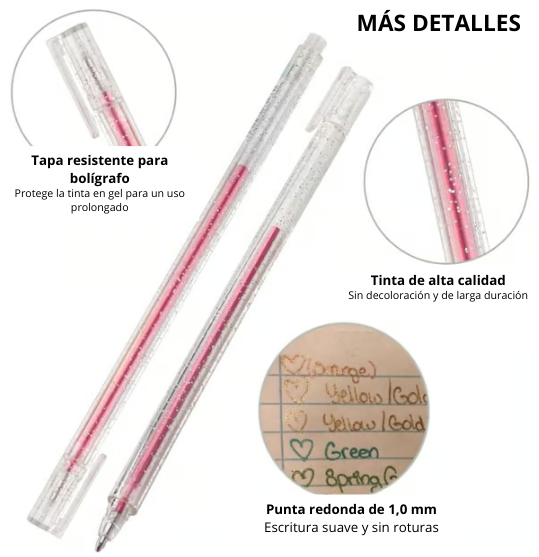 No se mancha. no se decolora ni se salta. Nuestros bolígrafos de gel brillantes de primera calidad son ideales para libros de colorear para adultos y niños . proyectos escolares. invitaciones a fiestas. tarjetas de felicitación. garabatos. decoración DIY y cartas a amigos.