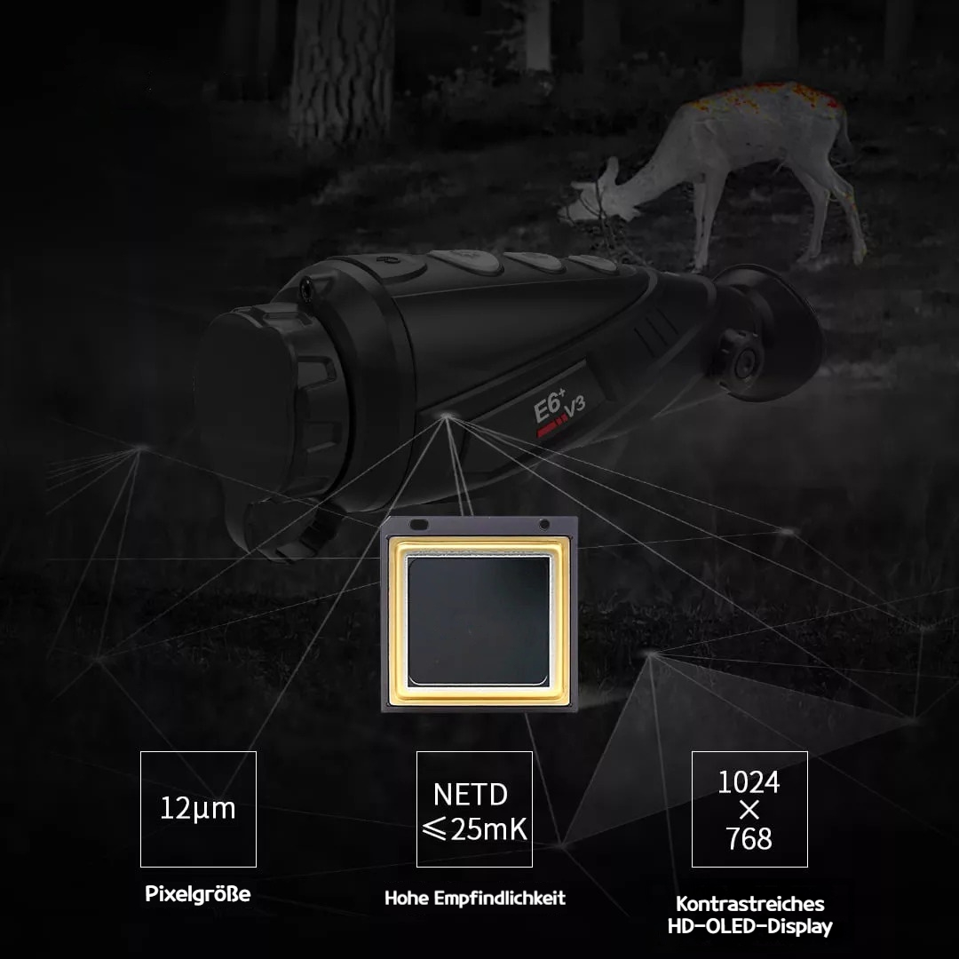Der integrierte Puls-Laser sorgt für präzise Langstreckenmessungen im Freien. Das Eye II E6 V3 ist der perfekte Begleiter für Jäger und Outdoor-Enthusiasten, die auf hochwertige Wärmebildtechnik setzen.